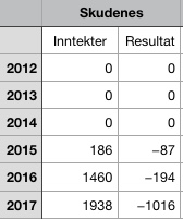 Skudenes har maktet store inntektshopp hvert år de har vært i drift. Samtidig har resultatet nå gått på en smell; Fra å gå med knappe 200 000 i minus i 2016 til over 1 million i minus i 2017.